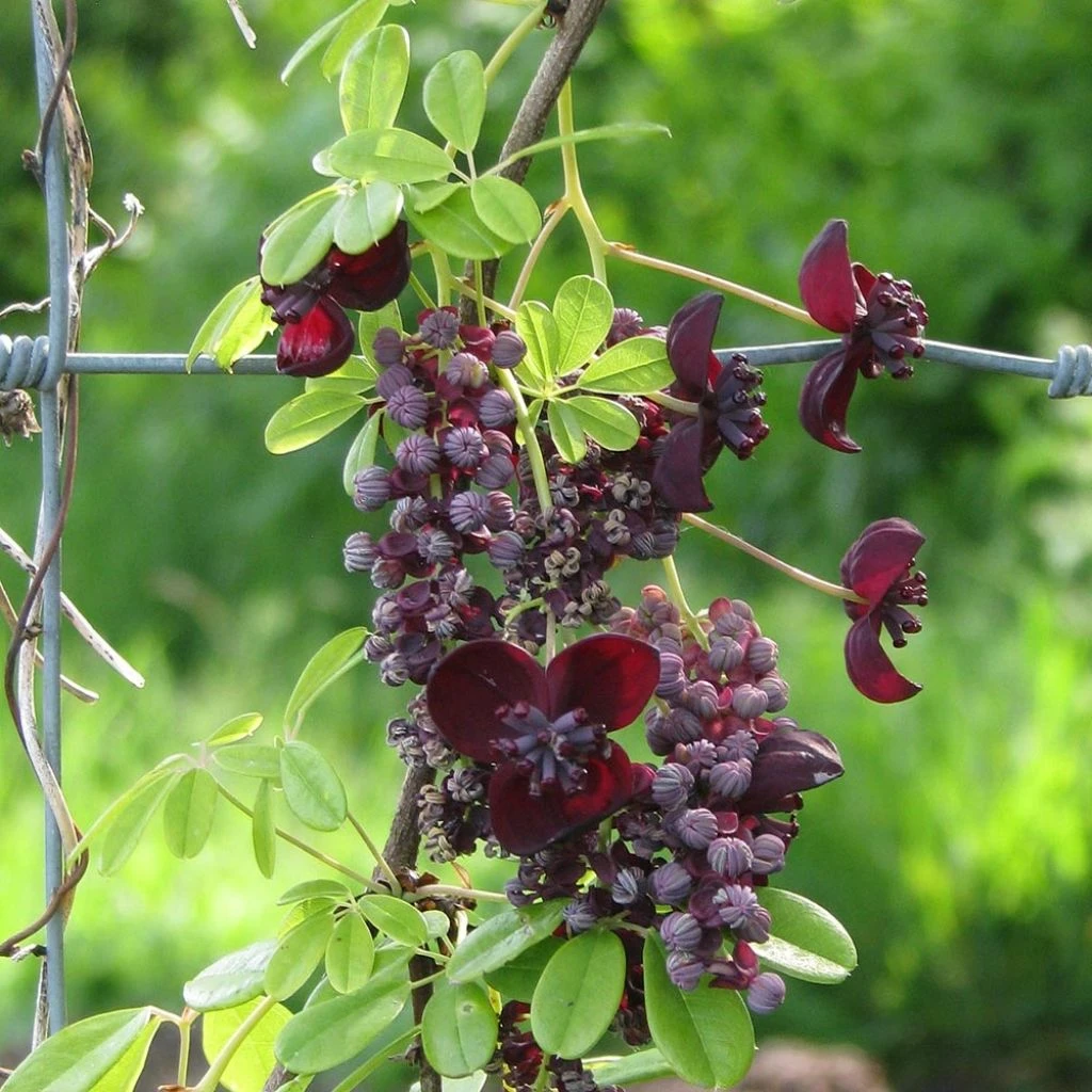 Moins capricieuse qu’une clématite, aussi volubile qu’une glycine, l’Akebia quinata couramment appelée Akébie ou « Liane chocolat » est une grimpante méconnue d’origine asiatique. Elle est pleine de ressources pour s’enrouler à tout ce qui est à sa portée : elle escalade et, en peu de temps, transforme le mur le plus triste en tableau luxuriant.
